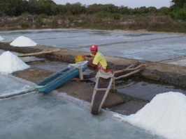 La récolte du sel est très artisanale : tout est récolté, mais sans isoler la fleur de sel.